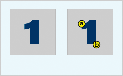 Şekil ipuçları, başlangıç ve bitiş şekillerinde hangi noktaların birbirine karşılık geldiğini belirtmek için harfler (a'dan z'ye) içerir. En fazla 26 şekil ipucu kullanabilirsiniz.