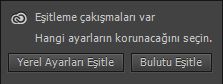 Bu bilgisayardaki yerel ayarları Creative Cloud ile eşitleyin; ayarların yerel sürümü ile Creative Cloud sürümünün üzerine yazın.