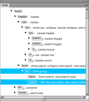 Etiketleri, sınıfları ve kimlikleri DOM panelinde çift tıklatarak düzenleyebilirsiniz. Ayrıca boşlukla ayırarak ilave sınıflar veya kimlikler ekleyebilirsiniz. Bir sınıf veya kimlik ile ilişkilendirilmemiş etiketler için, etiketi çift tıklattıktan sonra sınıfın veya kimliğin adını yazın.