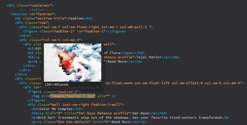 Kod görünümünde herhangi bir görüntünün önizlemesini görmek için farenizi görüntü URL'sinin üzerine getirin. Aşağıdakilerden biri olarak başvurulan görüntülere önizleme yapabilirsiniz: