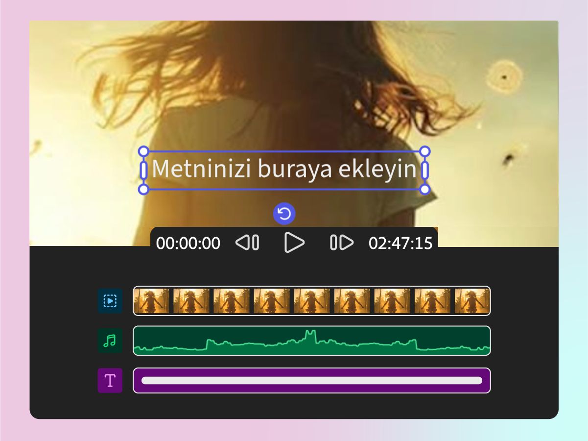 Görsel zaman çizelgesinde video kliplerini, sesi, görseli ve metni düzenleyin, ayarlayın ve düzenleme işlemlerini gerçekleştirin.