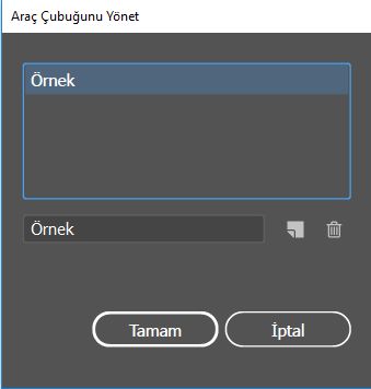 - Sil: Listeden bir araç çubuğu seçin ve Sil düğmesini tıklatın.