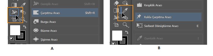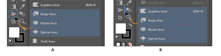 Alt (Windows) veya Option (macOS) tuşunu basılı tutun ve gizli araçlar arasında dolaşıp seçmek için bir aracı tıklatın.