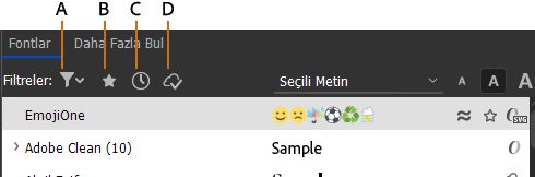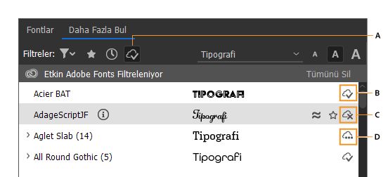 Font listesinde yalnızca Adobe Fonts'tan etkinleştirilen fontları gösterir.