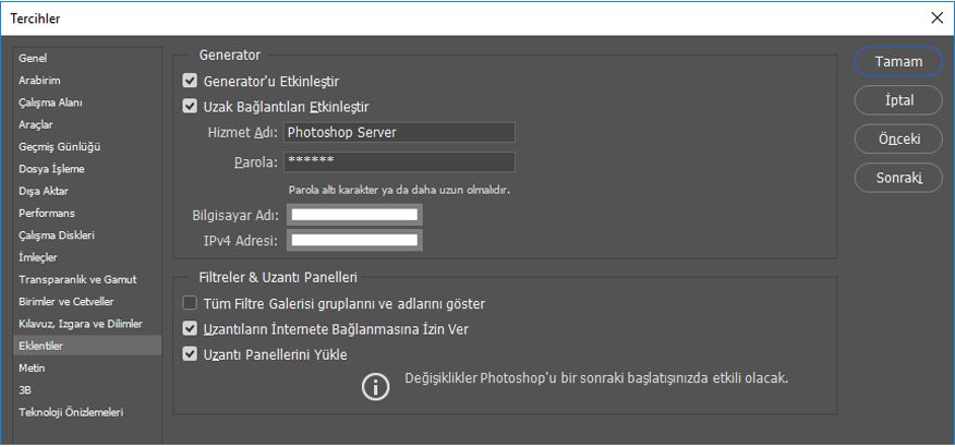Not:Photoshop'a bağlanamıyorsanız: