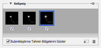 Gerekli bulanıklaştırma izlerini ekledikten sonra, Gelişmiş panelinde bir veya daha fazla bulanıklaştırma izini seçip bunları görüntüye uygulayabilirsiniz.