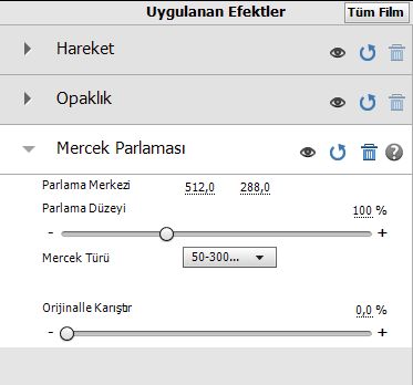Mercek Parlaması efekti seçili Mercek Parlaması efekti seçili -