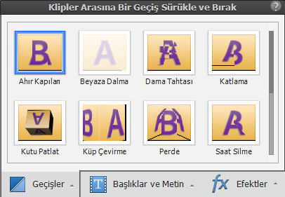 Hareketlendirmek için, herhangi bir video geçişine ilişkin minik resmi tıklatın.
