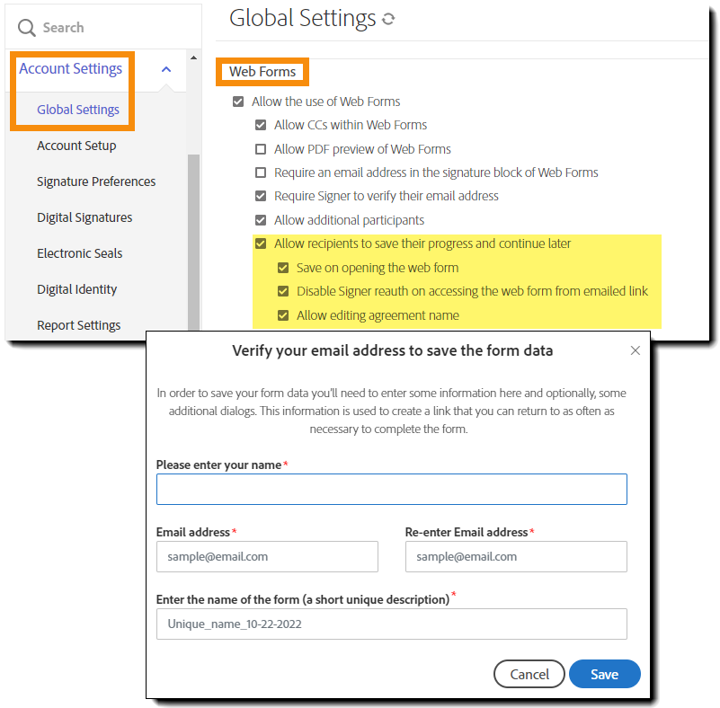 OEM 2.0 gömülü iş akışları için Acrobat Sign artık temel kullanıcı arayüzü yüzeylerinde ve bildirimlerde iş ortağı kayıtlı e-posta yerine kullanıcının kişiselleştirilmiş e-posta adresini görüntüler. Sözleşmeler, "Sizi bekliyor" ve "İncele ve İmzala" e-postaları gibi kuyruklar, kimlik doğrulama ve yetkilendirmeler için kayıtlı e-postayı dahili olarak korurken kişiselleştirilmiş kimliği tutarlı şekilde yansıtır. Bu durum gönderenler ve imzalayanlar için netliği artırır ve e-postaların teslim edilemeyen kayıtlı adreslere gönderilmesini önler.