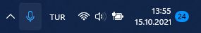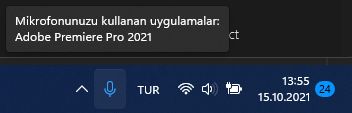 Windows 11, uygulamaların görev çubuğunda bir simge ve mesajla ses giriş aygıtına etkin olarak eriştiğini gösterir.
