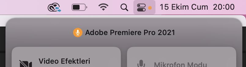 Bir Adobe uygulaması bir ses giriş aygıtı kullanırken, menü çubuğunda küçük bir turuncu gösterge görebilirsiniz.