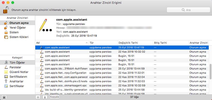 Uygulamalar > Yardımcı Programlar > Anahtar Zinciri Erişimi'ne gidin.