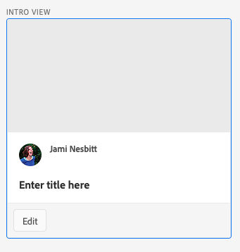 - Click Select File and navigate to the Hero image you prepared (1200x600 px jpeg). The uploaded Hero image appears at the top of your Intro View.