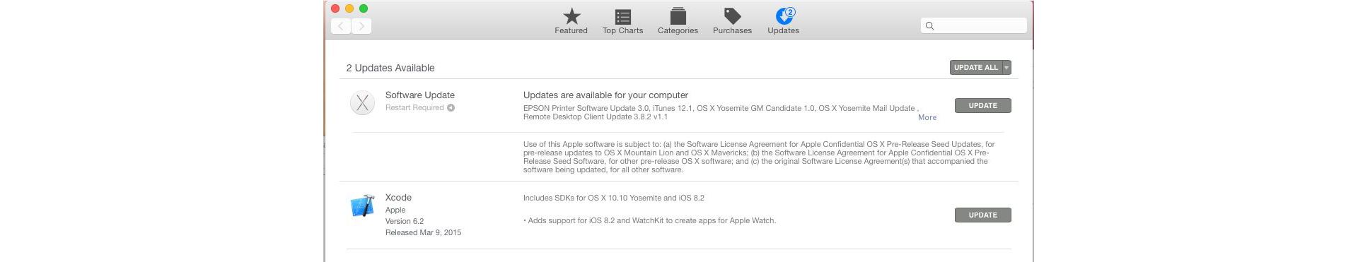 使用者仍可繼續使用 ICA 驅動程式進行掃描。連接掃描器之後,便可從 App Store 更新項目中下載對應的驅動程式 (如以下螢幕擷取畫面所示)。