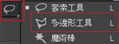 在「工具」面板的選項區域中,選取「套索」工具的「多邊形模式」修改選項