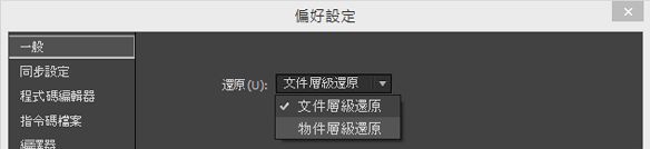 - 在「一般」索引標籤上,選取「還原」下拉式清單中的「物件層級還原」。