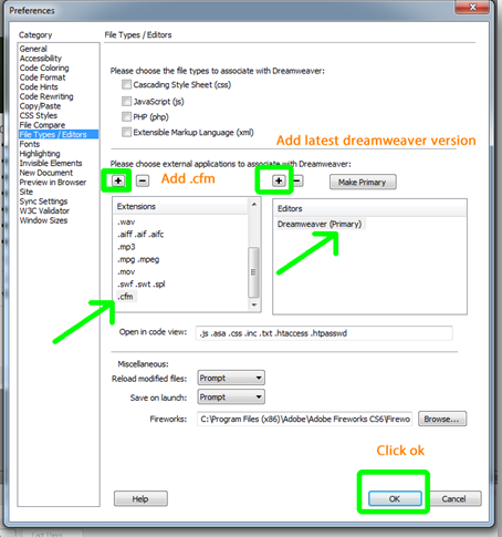 在右側面板中,按一下相應「延伸模組」的「新增」(+) 按鈕。在顯示的欄位中,輸入 .cfm。