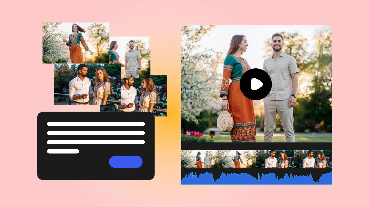 使用提示及各種相機控制項,在短短幾分鐘內使用「以文字建立影片 (Beta)」功能來產生影片。