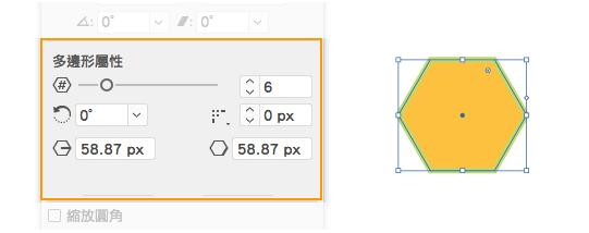 - 圓角半徑: 指定多邊形的圓角半徑。