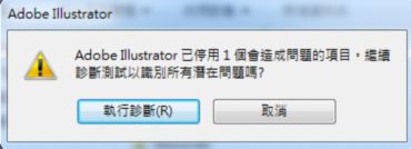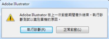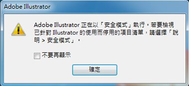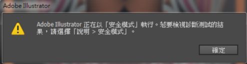 所有造成錯誤的檔案皆記錄在診斷檢查中時,Illustrator 便會啟動並顯示對話框,說明 Illustrator 正以「安全模式」執行。