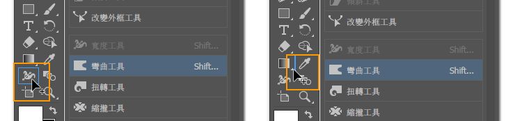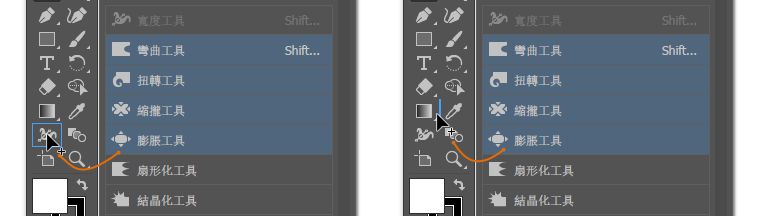 按住 Alt (Windows) 或 Option (macOS),然後按一下工具,即可循環切換並選取隱藏的工具。