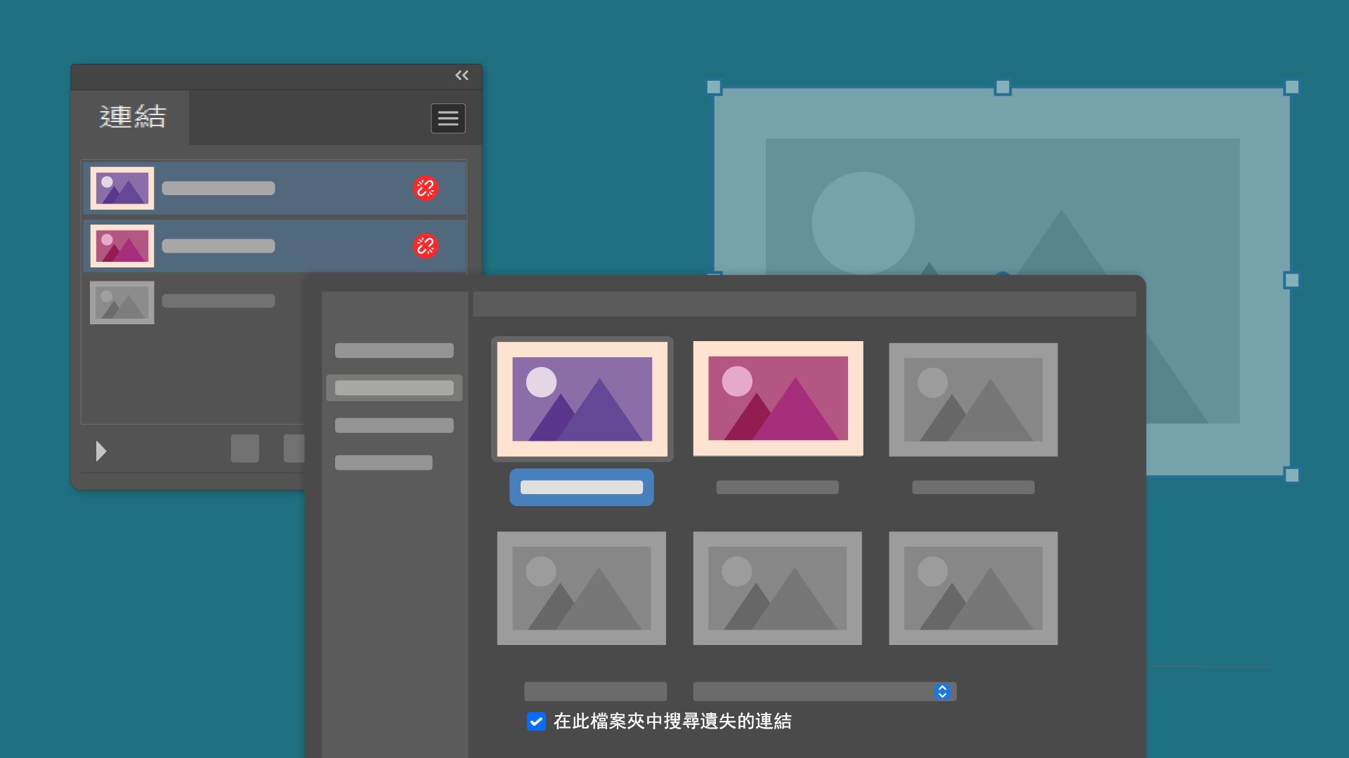 當您將遺失的檔案重新連結至 Illustrator 文件時,Illustrator 會自動在同一個資料夾中搜尋其他遺失的檔案,然後重新連結這些檔案。了解更多如何重新連結遺失的檔案。