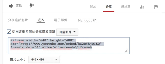 上面的原始碼採用 iFrame 標籤包覆張貼於 YouTube 的視訊檔連結。iFrame 是一種 HTML 容器,讓您可以加入網頁內,於網頁上以「視窗」形式顯示內容。