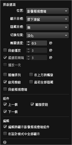 註解:在目標容器內貼上原始碼,與之前在觸發容器貼上主體影像一樣容易出錯,因為目的是要將原始碼貼在 Widget 的目標容器「裡面」。此時有可能 (視您目前選取的元素而定) 會將視訊原始碼貼在 Widget 之外,變成直接嵌入於頁面。所以此處請小心進行...若您按下「預視」以測試影像預視燈箱,發現即使未按下主體影像,視訊也會顯示,就代表視訊原始碼並未成功貼入容器,所以視訊才會立即顯示。視訊應該僅在按下主體影像之後顯示。