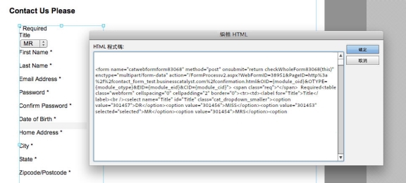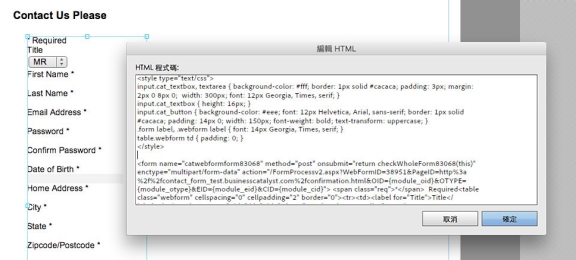 編輯 HTML 程式碼請小心勿意外移除上述幾行之外的標籤。即使僅移除單一個字元,如「>」,也可能導致表單損毀。發生此問題時,您可以返回管理主控台,重新複製程式碼再貼上,取代您編輯的程式碼。