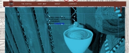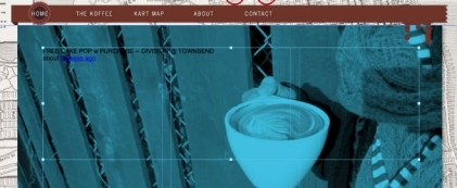 使用「文字」工具來拖移「KART MAP」(咖啡車地圖) 頁面上的文字框,此文字框就在頁首下方,頁面內容的頂端附近。