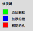 - 如有需要,選取「顯示修復」。 Photoshop 會使用適當的顏色顯示「原始網紋」、「牆的厚度」及「封閉孔洞」的修復:
