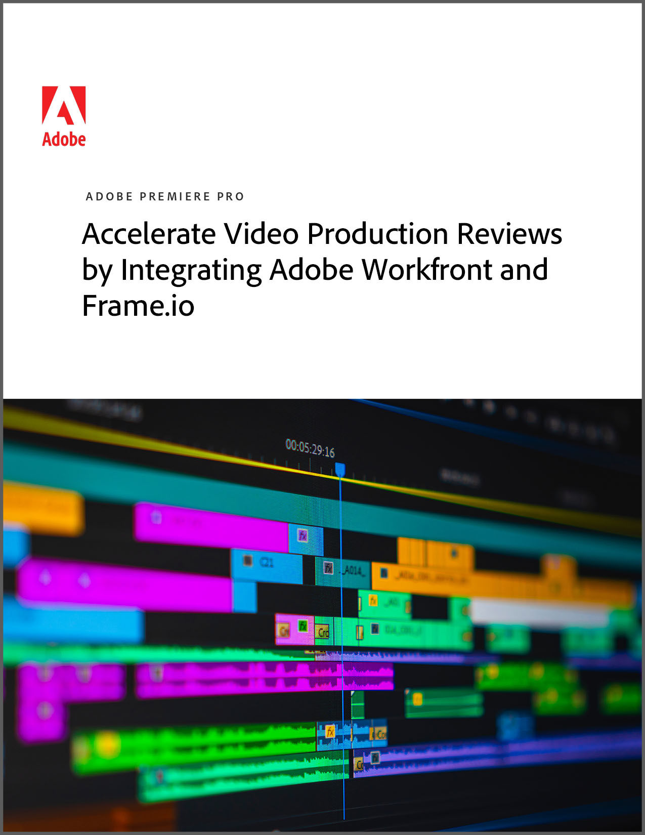 Video production requires the coordination of project management activities with content reviews, edits, and approvals. Integrating Adobe Workfront and Frame.io can help you combine these processes. Creative teams can quickly share video sequences to Frame.io from within Adobe Premiere Pro to capture feedback and approvals on content. Meanwhile, Marketing teams can benefit from Adobe Workfront to track production progress independently.