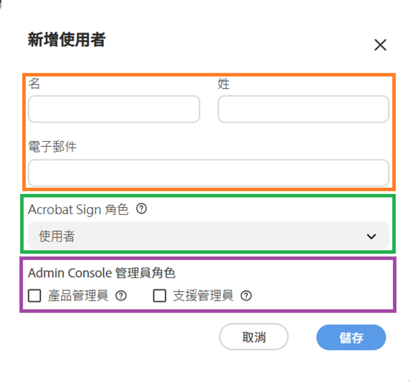 - 以更少的步驟,直接從 Acrobat Sign 新增使用者。