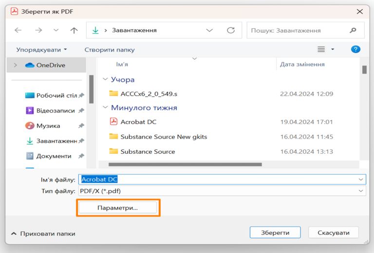 У діалоговому вікні Зберегти як виберіть пункт Налаштування.