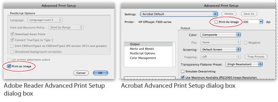 Під час друку PDF-файлу можуть виникнути проблеми. Наприклад, PDF-файл може містити пошкоджений вміст, такий як зображення або шрифти, які Acrobat не може обробити під час друку. За допомогою функції друку PDF-файлу як зображення можна оминути цю обробку, надіславши принтеру натомість просте зображення документа. Цей процес може стати причиною того, що зображення й шрифти виглядатимуть дещо нерівно, особливо на краях. Однак, можна вказати необхідну роздільну здатність у точках на дюйм.