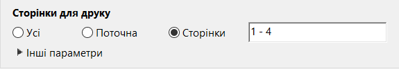 Параметри Сторінки для друку допомагають визначити, які сторінки включати до завдання друку.