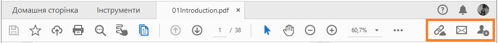 Відкрийте PDF-файл і виберіть Поділитися на глобальній панелі.