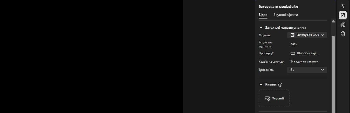 Якщо ви хочете додати перший кадр для генерування відео, у розділі Кадр виберіть Перший і передайте зображення.