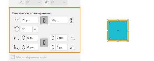 - Ширина/висота: дає змогу встановити висоту або ширину прямокутника. Тип і радіус кутів при цьому залишаються незмінними.