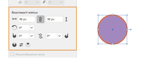 - Ширина/висота: дає змогу встановити ширину й висоту еліпса. Якщо ці параметри однакові, фігура являє собою коло.