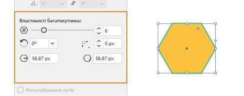 - Радіус заокруглення: дає змогу вказувати радіуси кутів багатокутника.