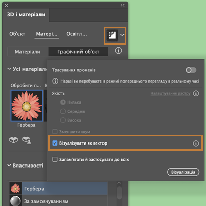- Параметри панелі «3D і матеріали»