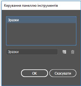 - Перейменування: виділіть у переліку потрібну панель інструментів і введіть нову назву для неї в текстовому полі.