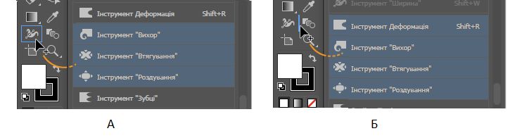 Утримуючи клавішу Alt (у Windows) або Option (у macOS), клацніть значок інструмента, щоб переглянути й вибрати приховані інструменти.