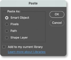 Скопіюйте вміст з Illustrator і вставте його у Photoshop, використовуючи параметр Шари в діалоговому вікні.