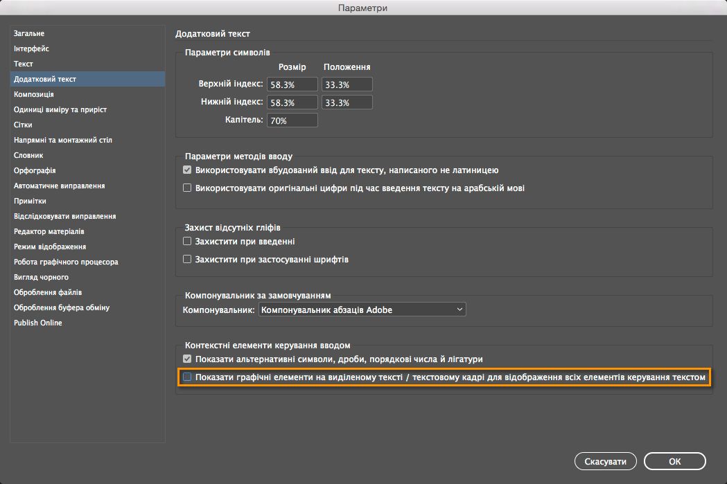 В InDesign перейдіть у меню Редагувати > Параметри > Розширений тип.