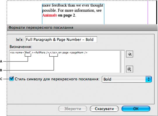 Структурний елемент «Стиль символу» можна використовувати також для застосування стилю символу до тексту всередині перехресного посилання.