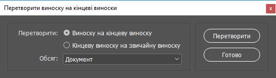 Документ: якщо треба перетворити всі звичайні чи кінцеві виноски в документі.