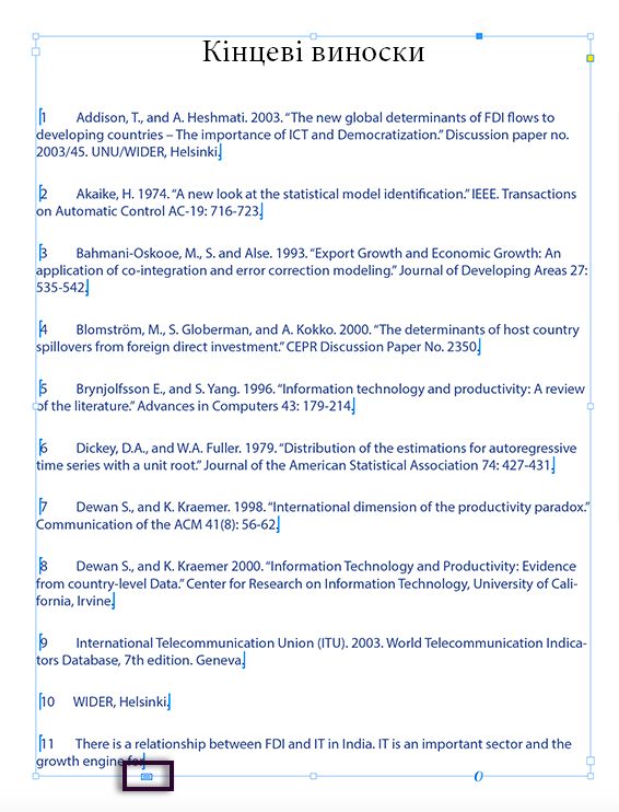 Усі кінцеві виноски імпортуються й додаються в новий текстовий кадр.