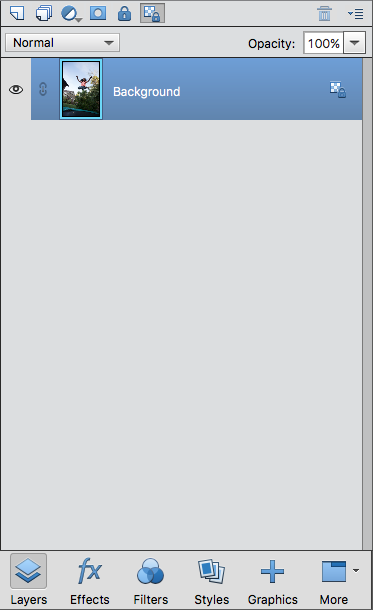 By default, the available workspace displayed is the Basic Workspace. In this view, buttons for the most frequently used panels are placed in the taskbar. The buttons in this workspace are Layers, Effects, Graphics, and Favorites. For example, clicking the Layers button displays all the layers-related options. To view all the other available tabs, or close open tabs, click More.